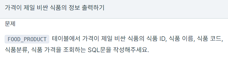 SELECT * from food_product order by price desc limit 1;'Programmers > MySQL' 카테고리의 다른 글